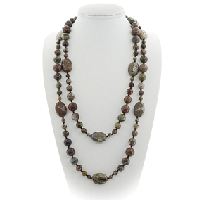 Яшма пейзажная, разноразмерные круглые с плоскими овалами 18х25мм, бусы "Стихия", длина бус 132см