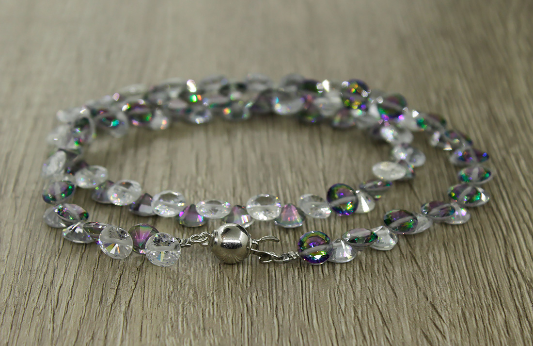 Фианит "хрусталь + мистик-топаз" бусы длиной 42см