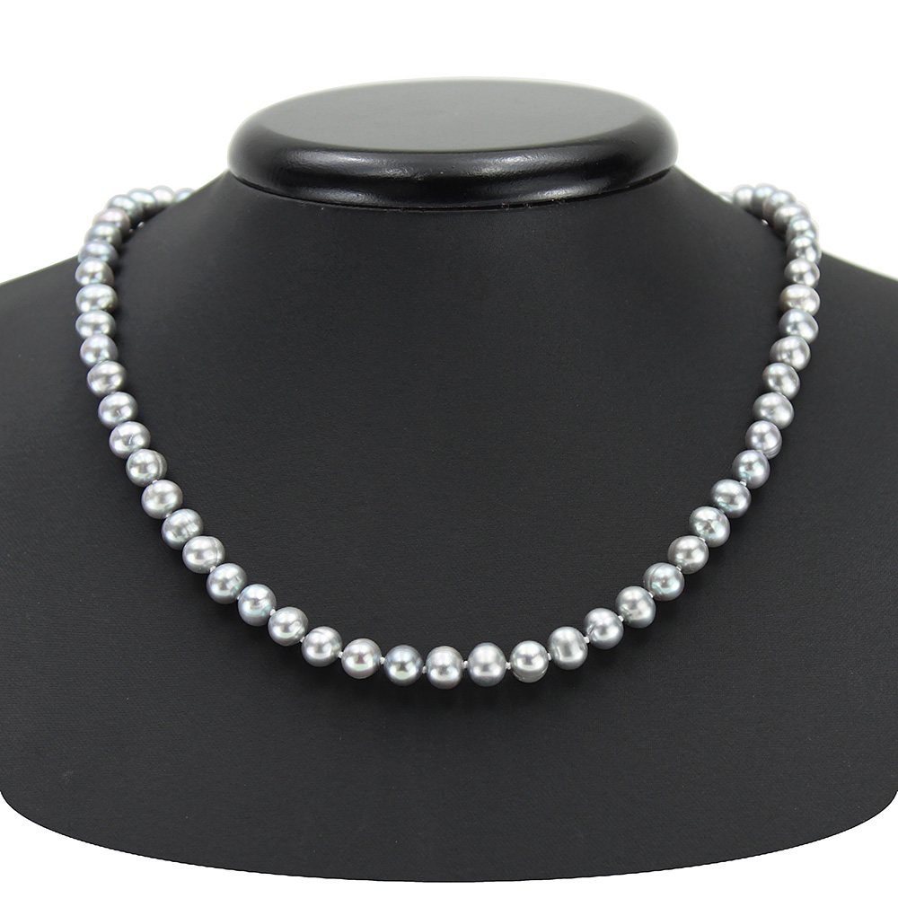 Жемчуг 6-7мм неровн темно-сер бусы крт 45см *