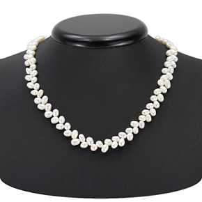 В этом украшении Вы будете блистать на любом торжественном приеме. В изделии используется натуральный белый жемчуг необычной формы. Размер жемчужин 5х8мм, длина бус 45см.