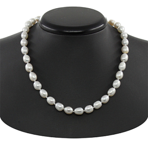 Бусы жемчуг белый, овальные 8х10мм, короткие 44см