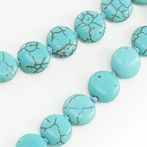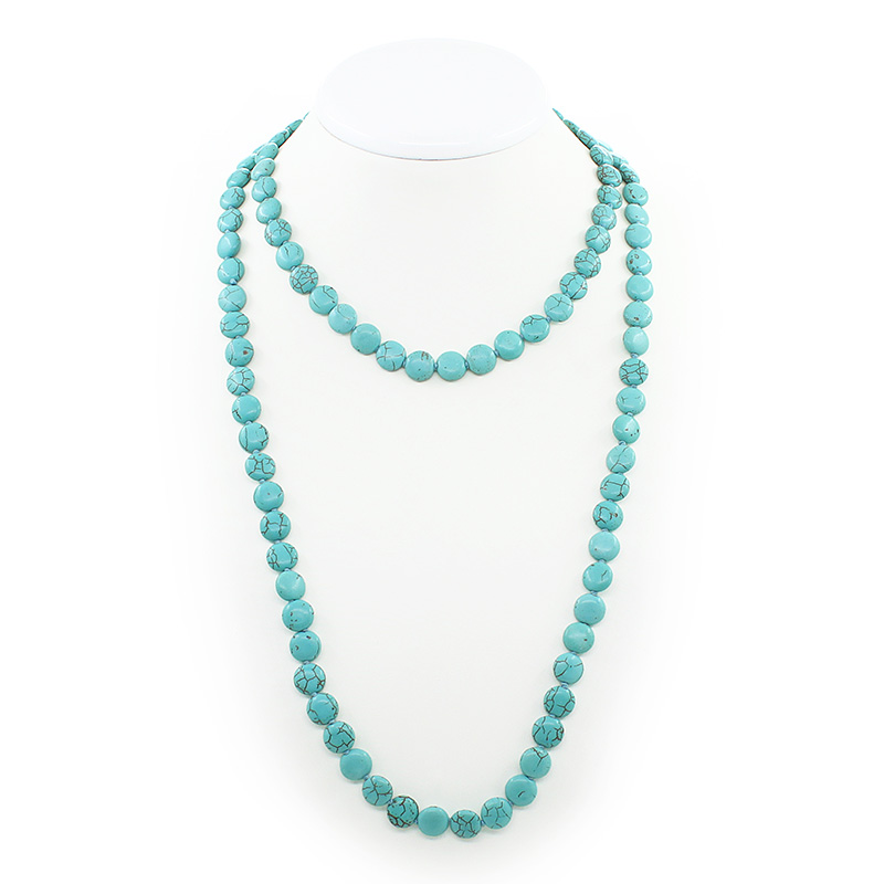 Бусы бирюза (имитация) голубая, таблетки 14мм, длинные 116см