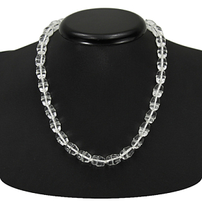Бусы сделаны из натурального горного хрусталя. Ширина бус 10х10мм, длина изделия 48см.