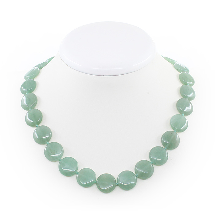 Авантюрин зеленый, плоские круглые бусины 15мм, бусы 47см