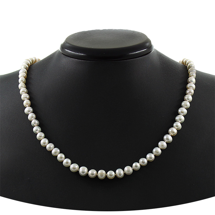Бусы белый жемчуг, очень неровный круглый 7мм, короткие 50см