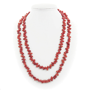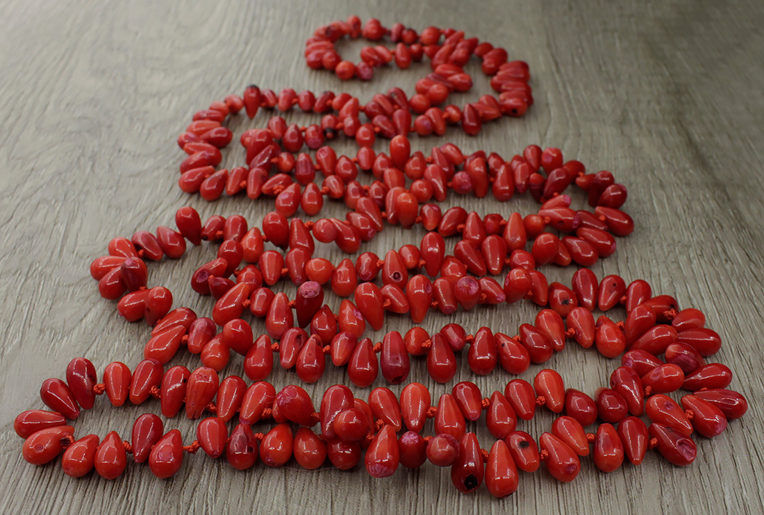Длинная нитка бус из натурального красного коралла в форме капелек. Размер бусин 5х8мм, длина бус 120см.
