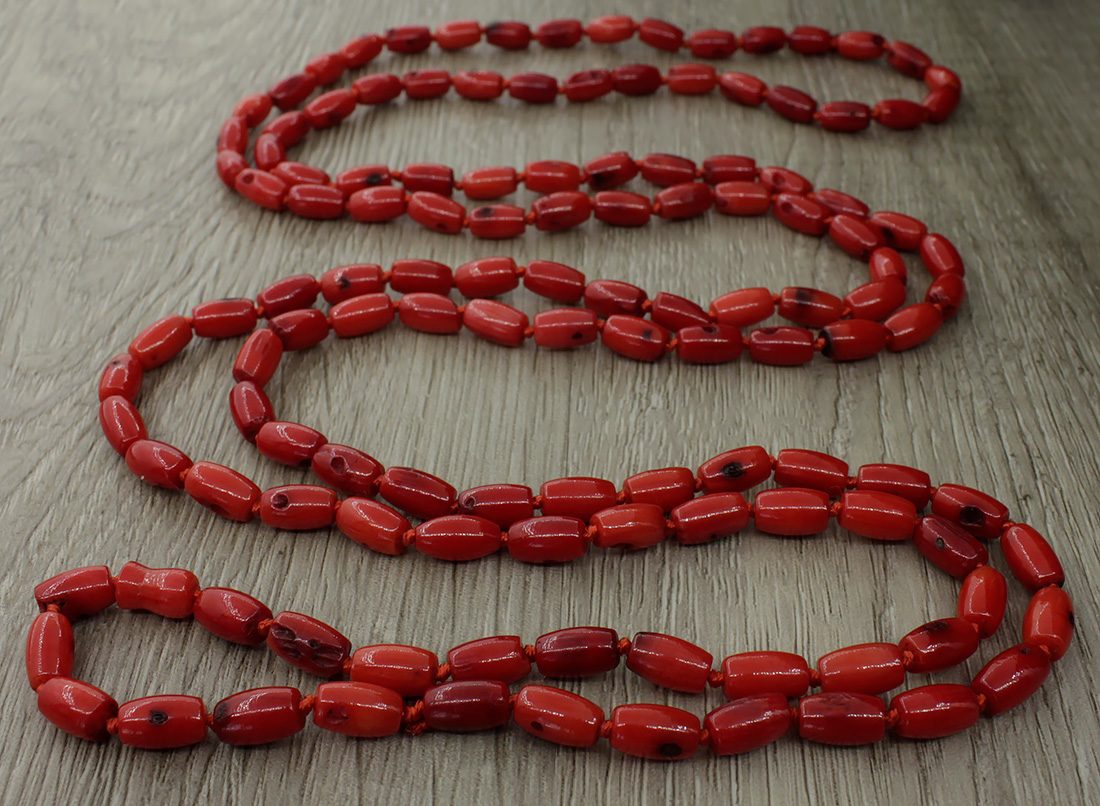 Бусы из натурального коралла станут яркой деталью как в повседневном, так и в праздничном образе. Украшение на нити, с узелками через каждую бусину, можно носить в два яруса. Длина бус: 118см. Размер бусины: 8х5мм.