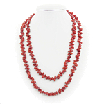 Коралл красный натуральный, "Гималаи", бочонок 8х5мм, бусы 118см