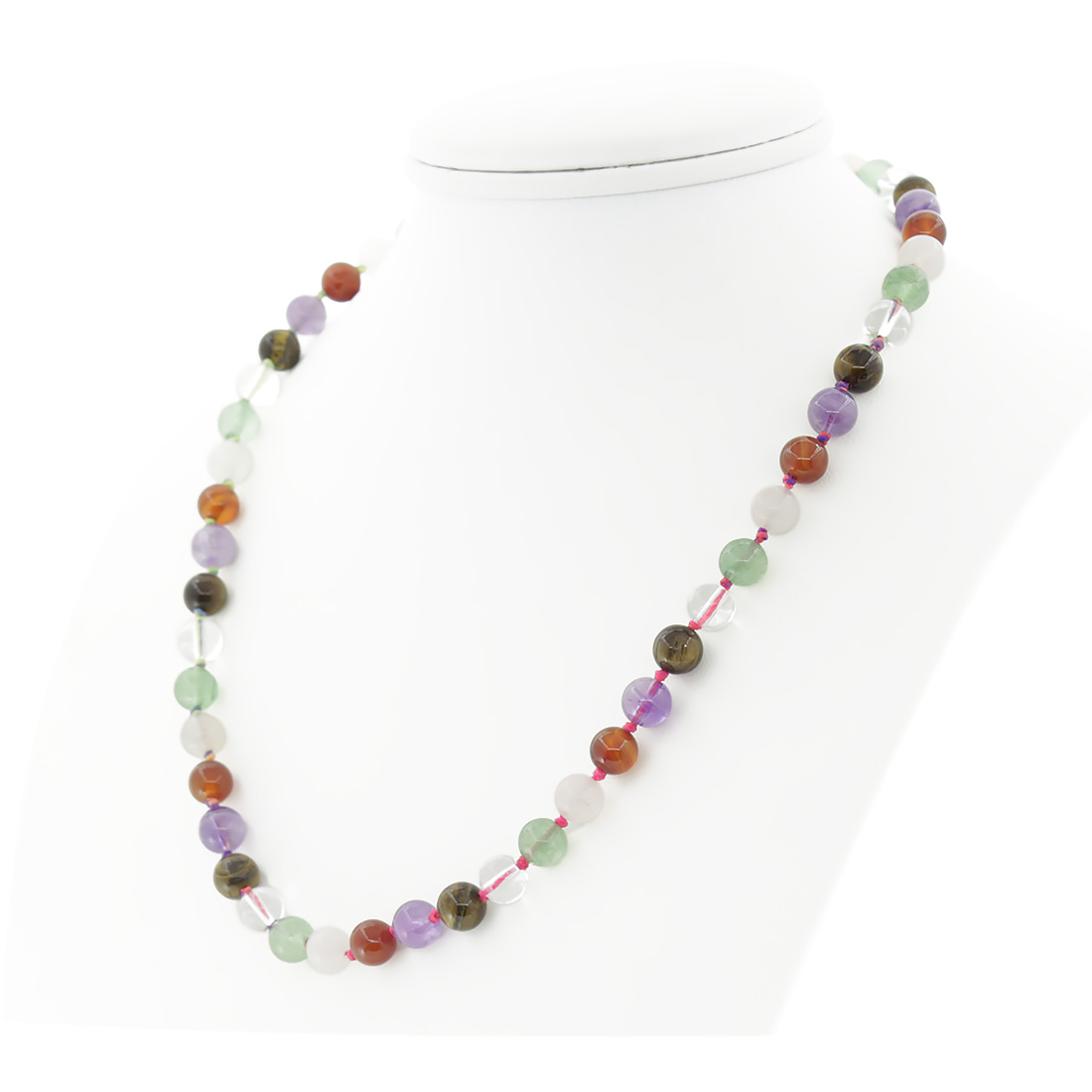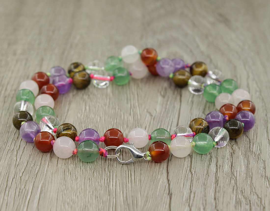 Бусы из натуральных самоцветов: горный хрусталь, аметист, розовый кварц, флюорит, тигровый глаз, сердолик. Добавят яркие краски в Ваш повседневный или праздничный образ. Диаметр бусин 8мм. Длина бус 50см.