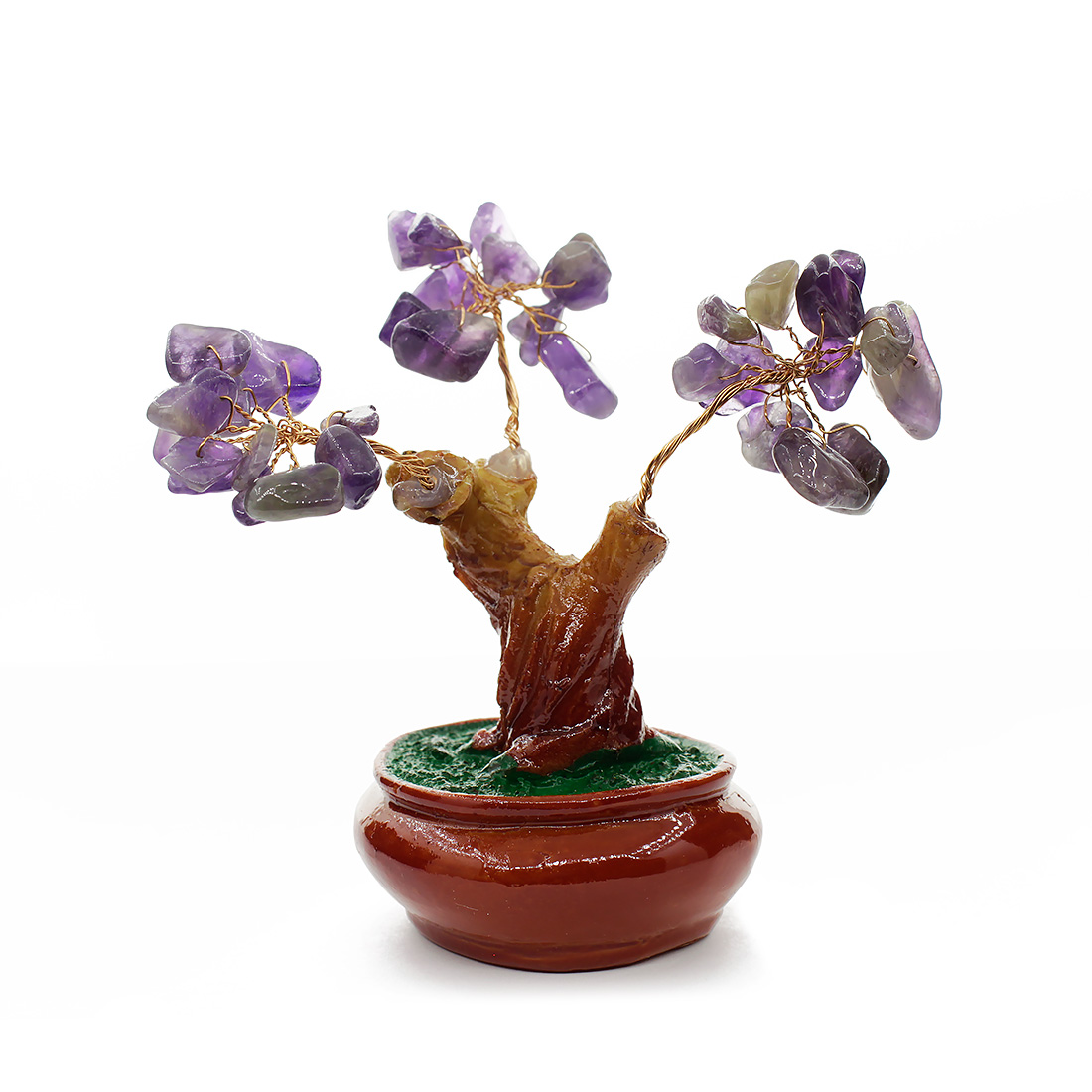 Дерево счастья натуральным аметистом. Веточки можно легко расправить и придать им форму по Вашему вкусу. Ствол дерева и подставка могут отличаться по форме. Высота дерева примерно 9 см.