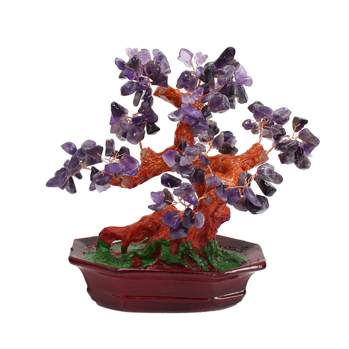 Высота дерева 18см. Листики сделаны из камушков натурального аметиста. Подставочка по форме может отличаться.