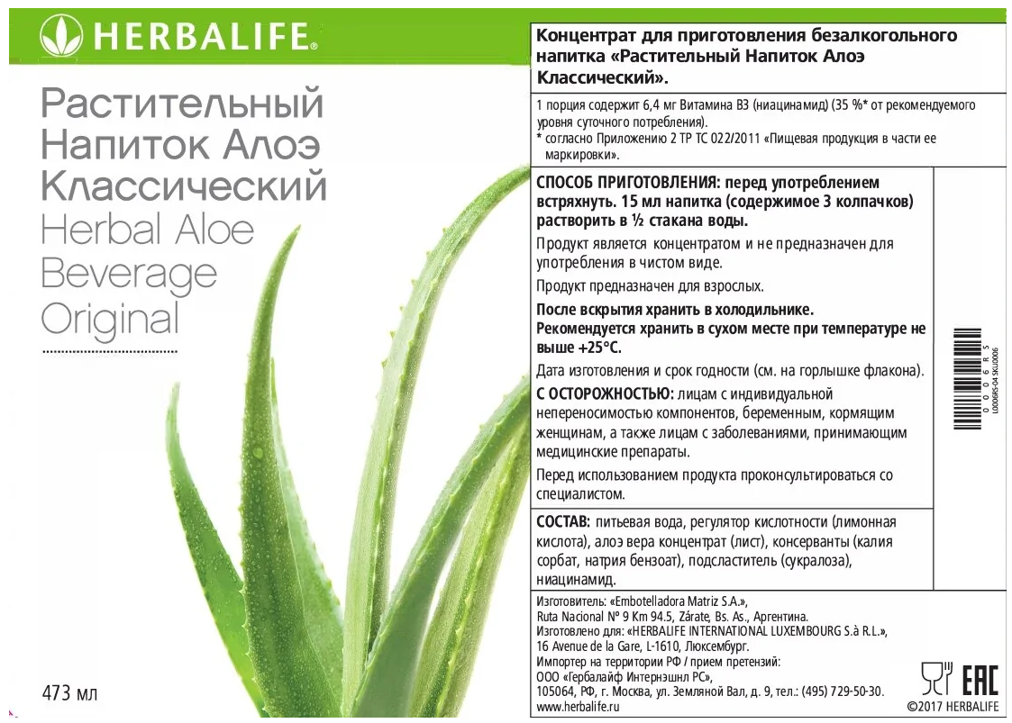 Растительный напиток содержит сок алоэ, который поддерживает и стимулирует естественную работу пищеварительной системы и стимулирует процесс пищеварения.