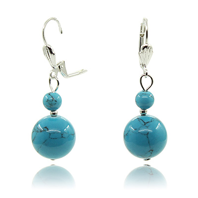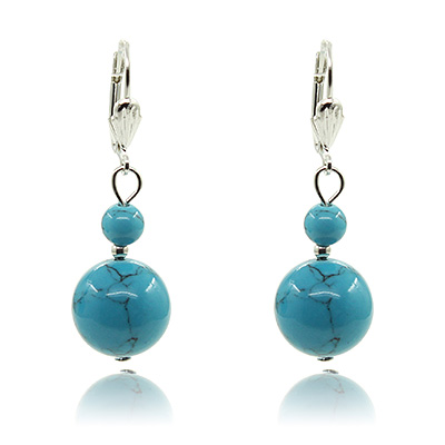 Очаровательные серьги-шарики из бирюзы(имитация). Комбинируя их с разными украшениями, Вы сможете каждый раз создавать новый неповторимый образ. Диаметр больших бусин 14мм, маленьких - 6мм. Длина сережки вместе с застежкой 4,5см.