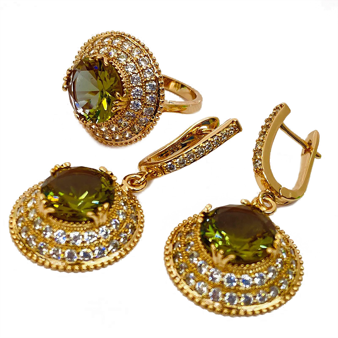 Комплект "Султан-3", султанит, покрытие под золото, размеры кольца: 17, 18,19, 20
