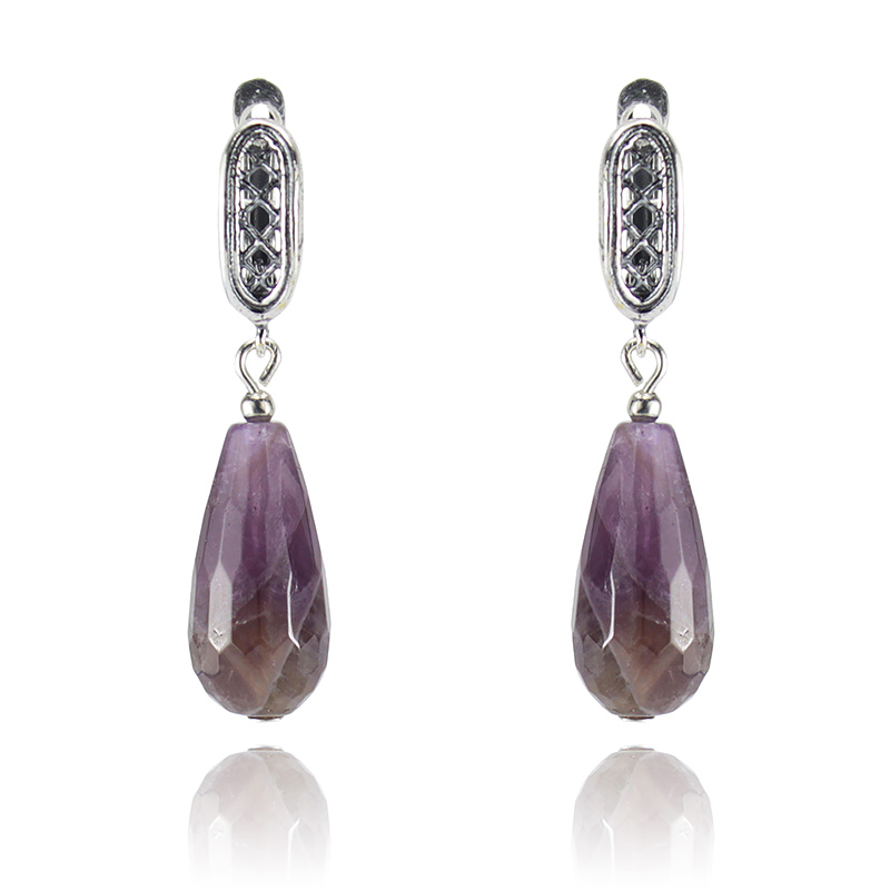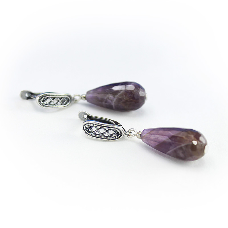 Серьги "Фея" с натуральным аметистом в форме капли. Огранка создает красивую игру света сквозь лавандовую палитру природного камня. Длина серьги со швензой 4 см.Вес серьги: 3 гр.Швенза: ювелирный сплав.