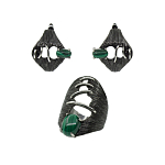 Комплект с фианитами "Карина", керамика зеленая с покрытием родий