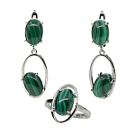 Комплект "Мила-19", малахит, покрытие родий, размеры кольца: 17, 18, 19, 20