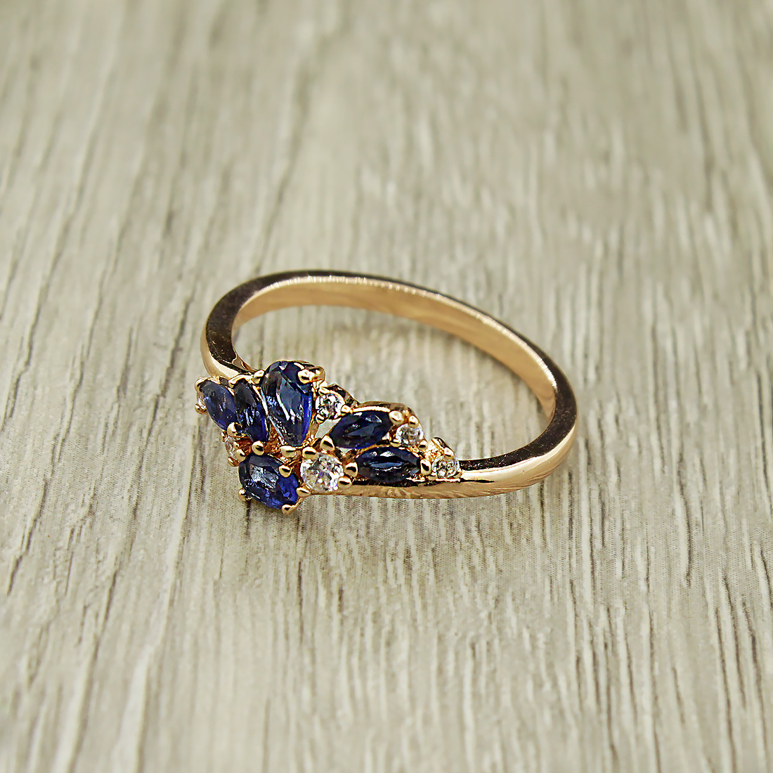 Изящное кольцо с фианитом "голубой топаз" - нежный элемент Вашего повседневного или праздничного образа. Размер фианитов "хрусталь" от 1мм до 2мм, "сапфир" от 2x3мм до 3x5мм. Размер кольца 19.