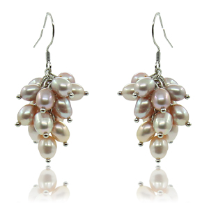 Серьги "Гроздь" жемчуг темно-розовый