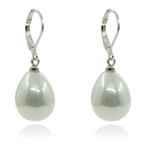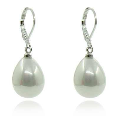 Серьги "Капля" майорка белая, 12 х 16мм