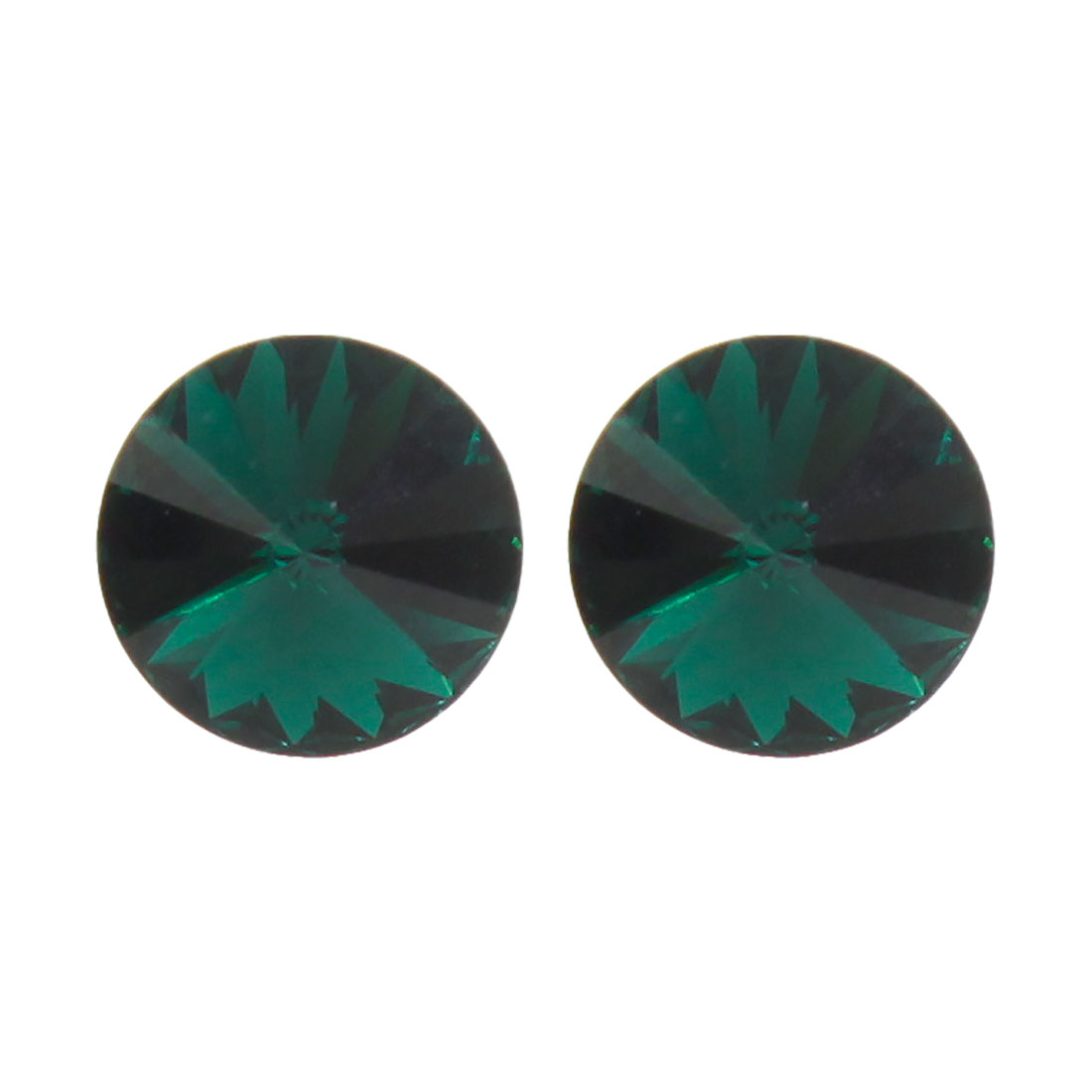 Серьги "Искра" фианит "темный изумруд" круглый 8мм