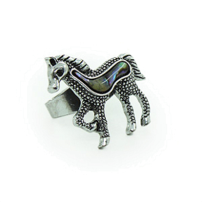 Эта милая Лошадка украшена кусочками переливающегося перламутра-гелиотиса. Колечко безразмерное, его можно одеть на любой палец.