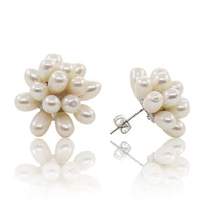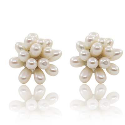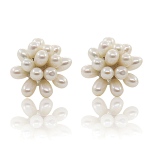 Изысканные серьги-гвоздики исполнены в виде грозди белых жемчужин. Диаметр сережки примерно 22мм.