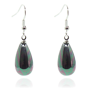 Сережки из черной майорки в форме капель. Крючок с серебрянным покрытием.