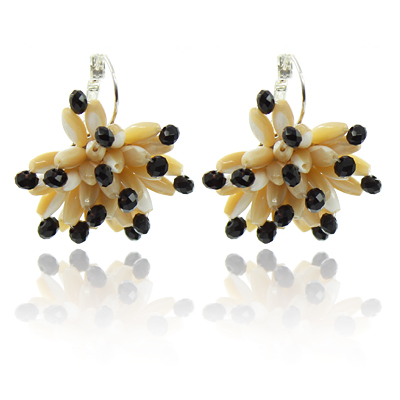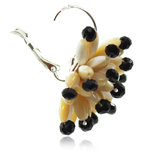 Серьги "Астра" перламутр бежевый с гранеными вставками "шпинель"