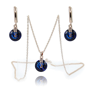 В этот замечательный комплект входят серьги и кулон с натуральными фианитами цвета "сапфир". Диаметр фианита 12мм. Длина сережки с замочком 34мм. Длина кулона 33мм.