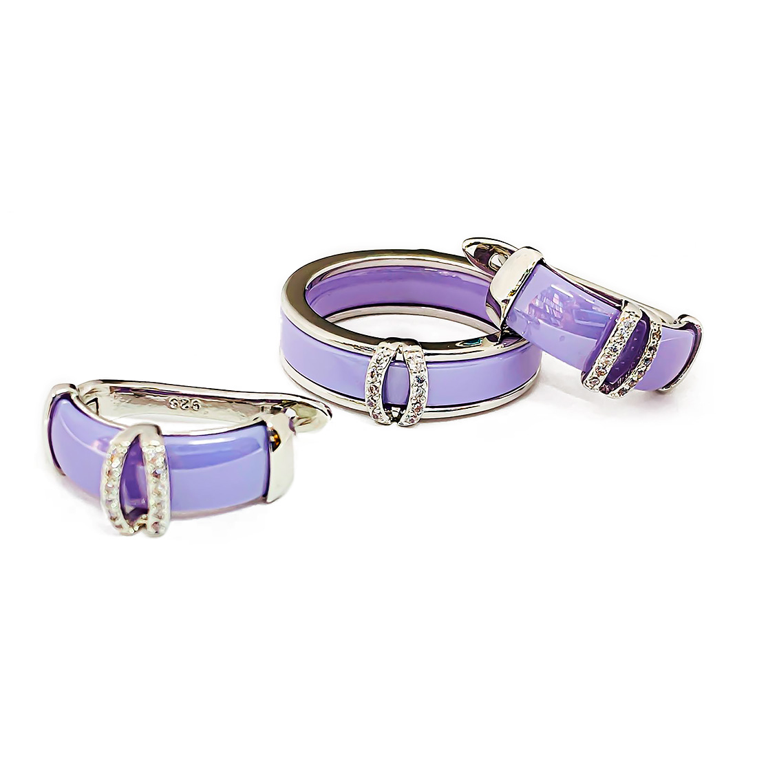 Комплект с фианитами "Карина", керамика сиреневая с покрытием родий
