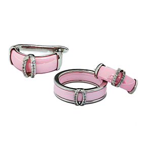 Комплект с фианитами "Карина", керамика розовая с покрытием родий
