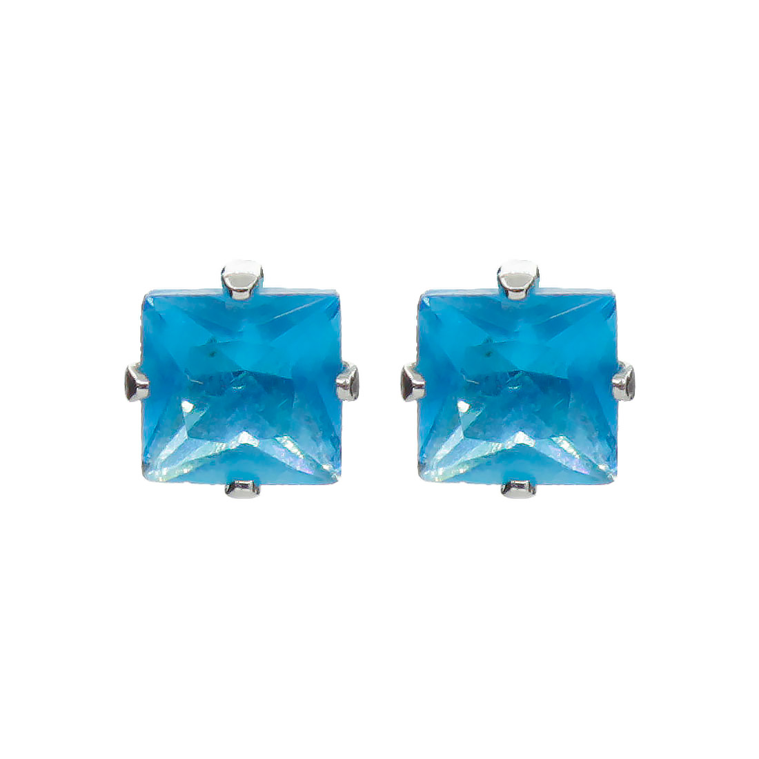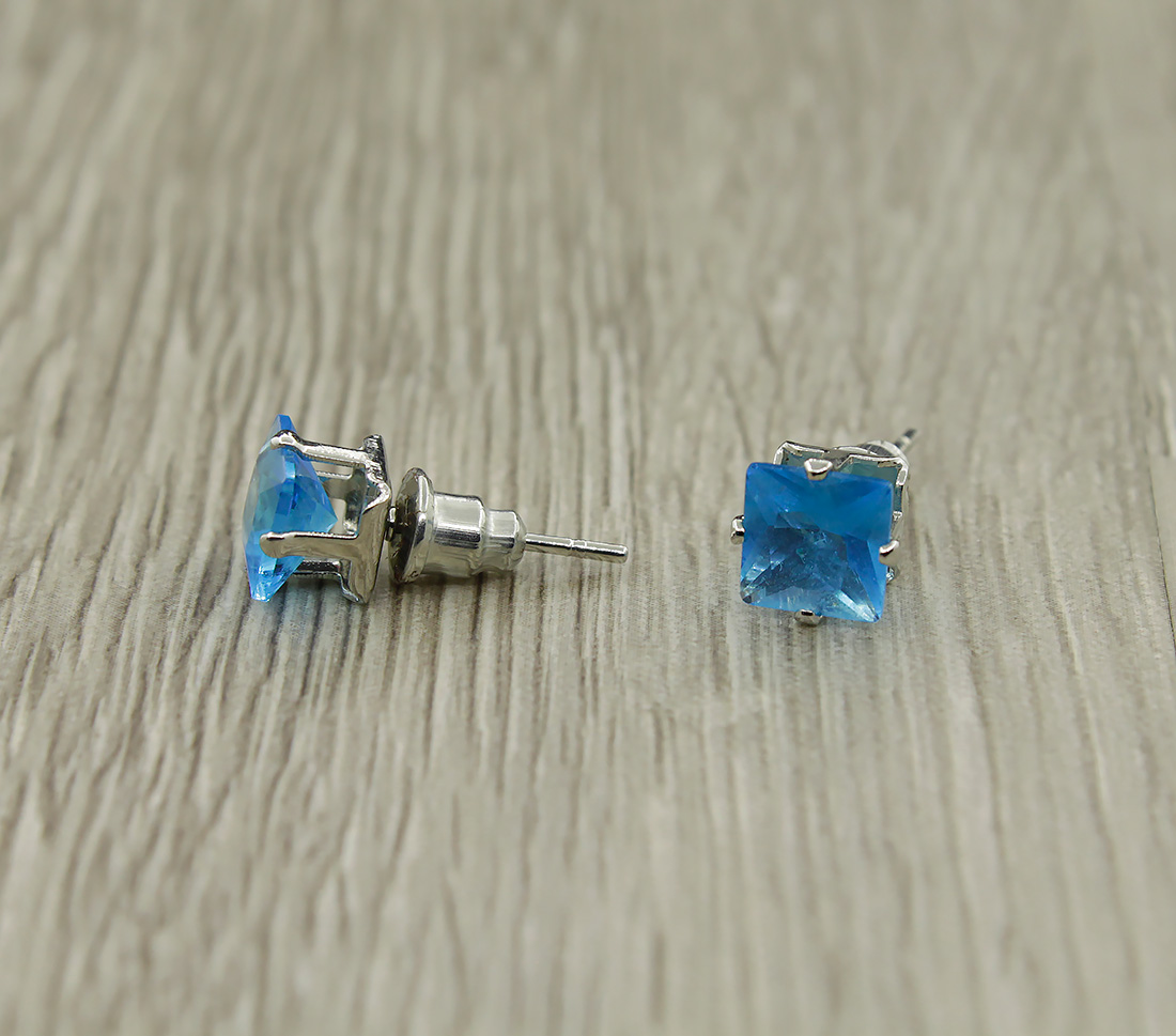Серьги "Искра" фианит "голубой топаз" квадрат 6x6мм