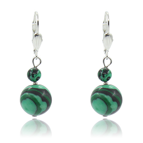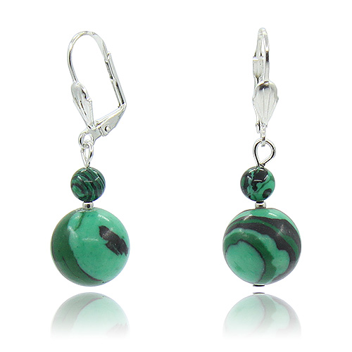 Очаровательные серьги-шарики из имитации малахита. Комбинируя их с разными украшениями, Вы сможете каждый раз создавать новый неповторимый образ. Диаметр больших бусин 14мм, маленьких - 8мм. Длина сережки вместе с застежкой 4см.