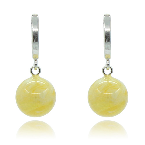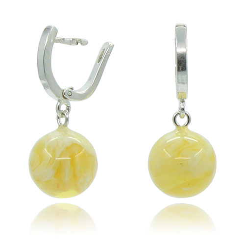 Серьги из плавленого янтаря. Диаметр шариков 15мм. Покрытие замочков - посеребрение.