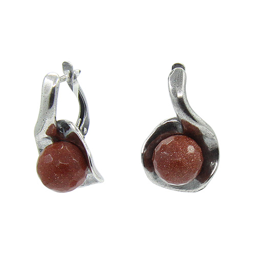 Комплект "Волна" коричневый авантюрин граненый 20