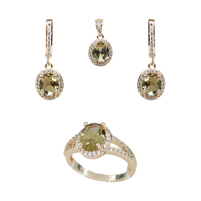 Солидный комплект со вставкой из султанита и качественной фурнитурой. В комплект входят: серьги, кольцо и кулон. Находится на удаленном складе (отгрузка на 2 дня позже).