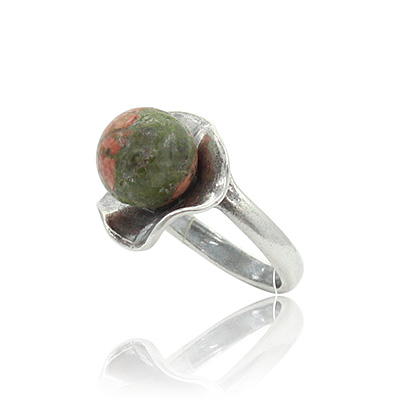Кольцо со вставкой из унакита станет прекрасным дополнением Вашего образа. Размер кольца 19, диаметр бусины 12мм.
