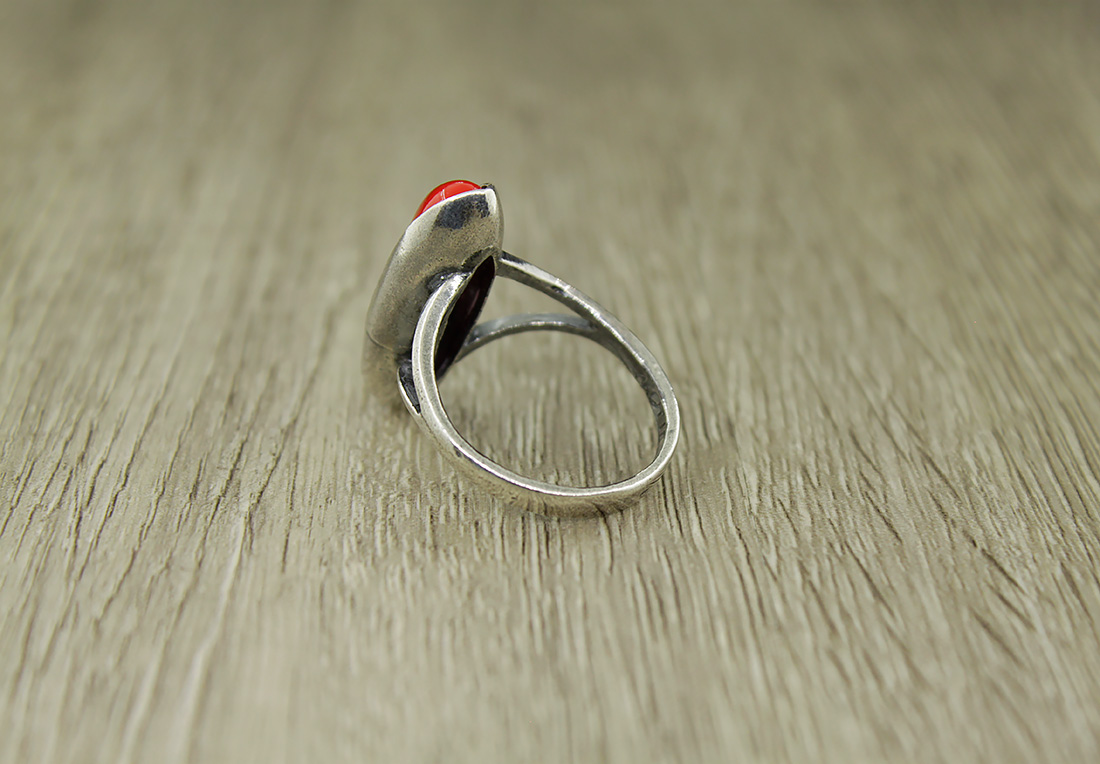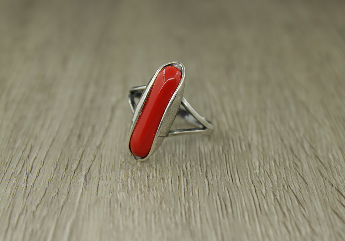Яркое и в то же время утонченное кольцо с кораллом (имитация) сочетает в себе стиль и строгость. Добавит необычный элемент в Ваш образ. Размер камня в оправе 10*25мм размер кольца 20.