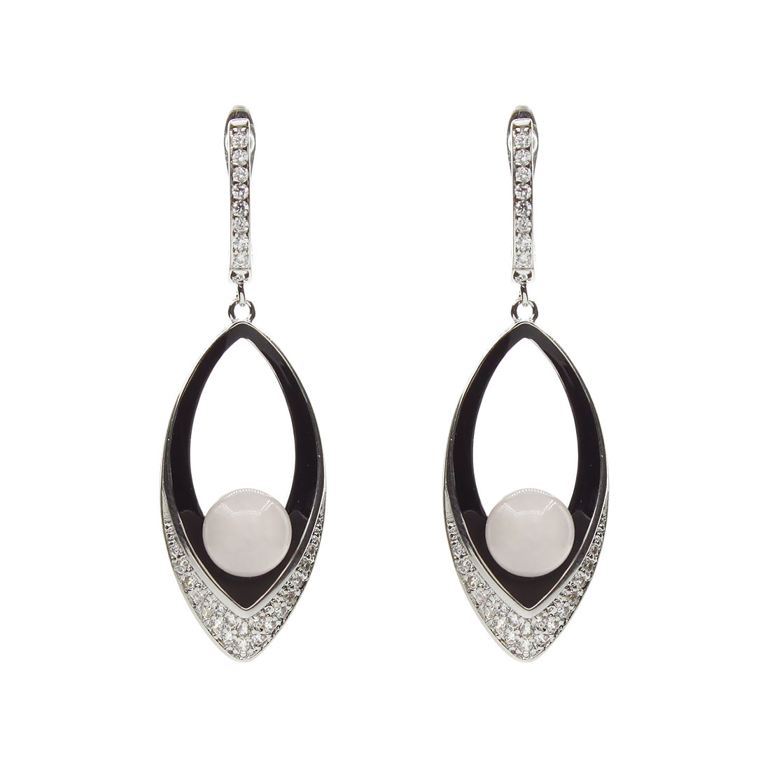 Серьги выполнены из ювелирного сплава и натурального розового кварца. Длина сережки 50мм. Диаметр бусины 8мм. Размер подвески 16х33мм.