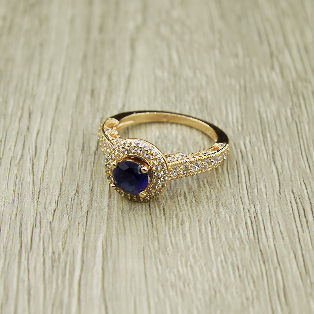 Кольцо с фианитом "сапфир" выглядит благородно и утонченно. Прекрасно дополнит праздничный образ. Диаметр фианита 6мм, размер кольца 17.