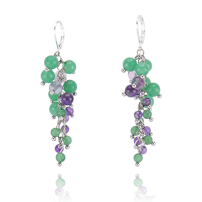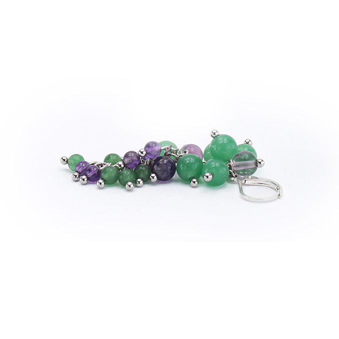 Серьги "Шардоне" хризопраз, флюорит, аметист (6-4мм)