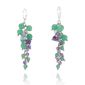 Великолепные серьги из натурального хризопраза, аметиста и флюорита. "Вкусное" и изысканное цветовое сочетание грозди полностью оправдывает свое название в честь знаменитого сорта винограда "Шардоне". Диаметр бусин 6 и 4 мм. Длина серьги вместе со швензой 6.5 мм. Вес серьги 4 гр. Фурнитура: ювелирный сплав.