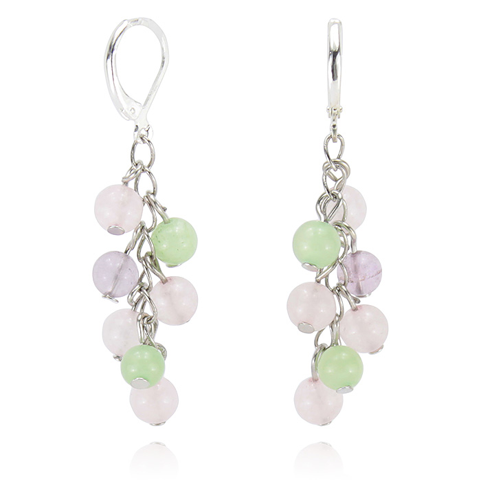 Серьги "Полина" роз.кварц, флюорит, оникс 6мм