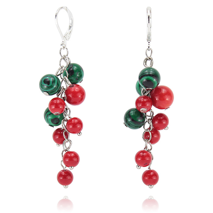 Великолепные яркие серьги из коралла и малахита(имитация). "Вкусное" и изысканное цветовое сочетание грозди полностью оправдывает свое название в честь знаменитого сорта винограда "Шардоне". Диаметр бусин 8 и 6 мм. Длина серьги вместе со швензой 6.5 мм. Фурнитура: ювелирный сплав.