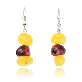 Серьги "Ария" из янтаря (имитация) в миксе из двух цветов: желтого и темно-коричневого. Длина сережки со швензой 4,5 см. Металл: ювелирный сплав.