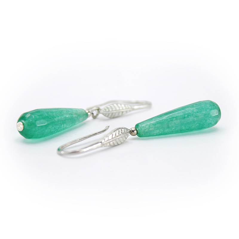 Серьги "Фея" кварц зеленый гран капля7*25мм