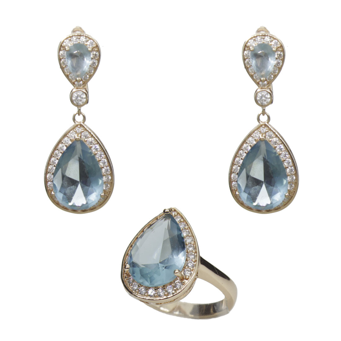 Комплект "Стефания", фианит "голубой топаз", размер кольца 18