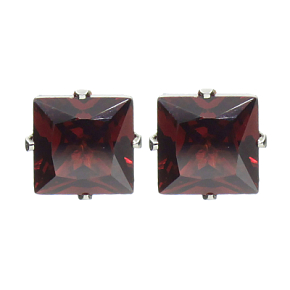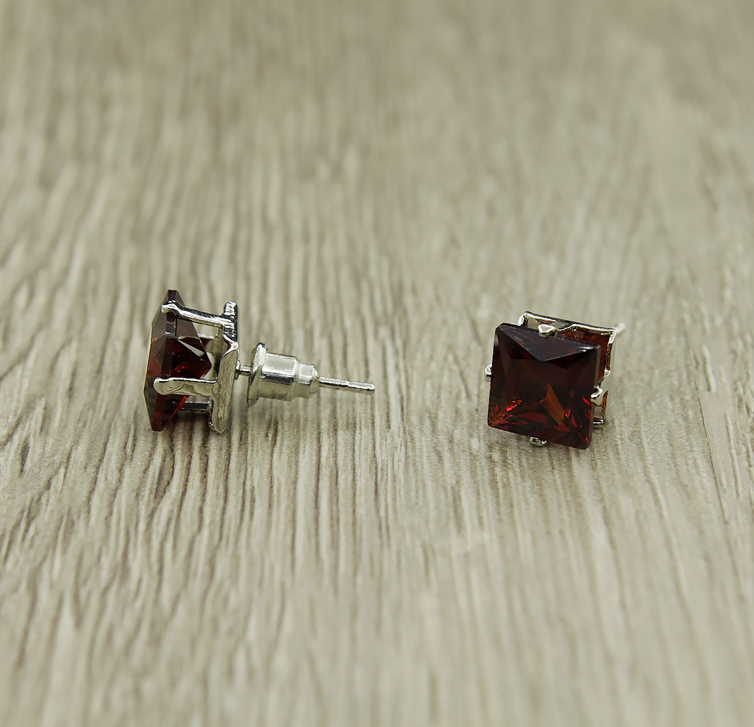 Серьги "Искра фианит "гранат" квадрат 8x8мм