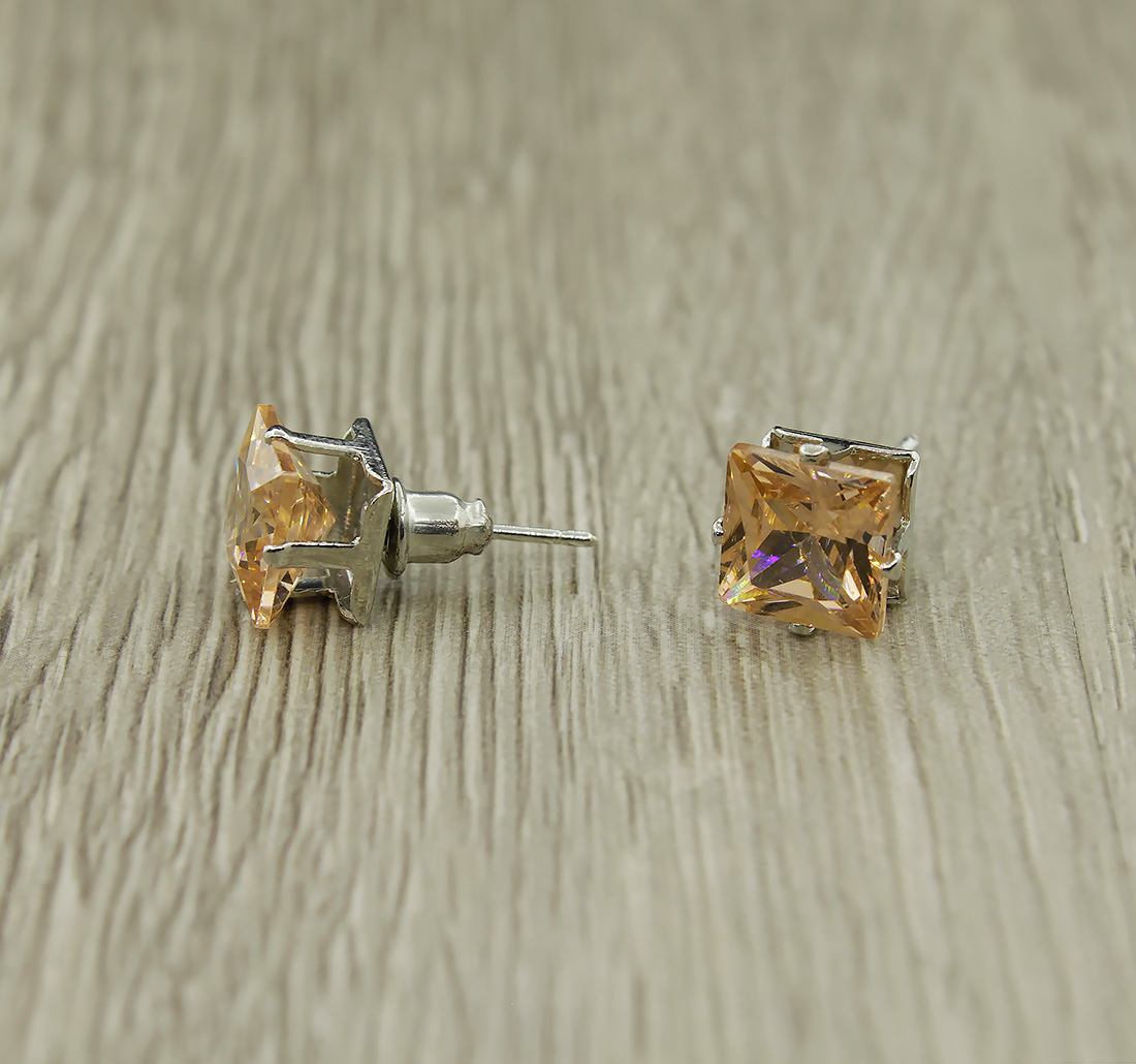 Серьги "Искра" фианит "жетлый сапфир" квадрат 8x8мм
